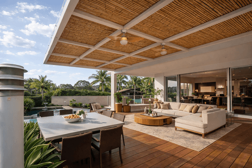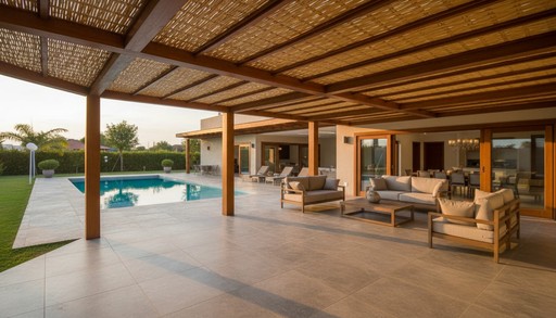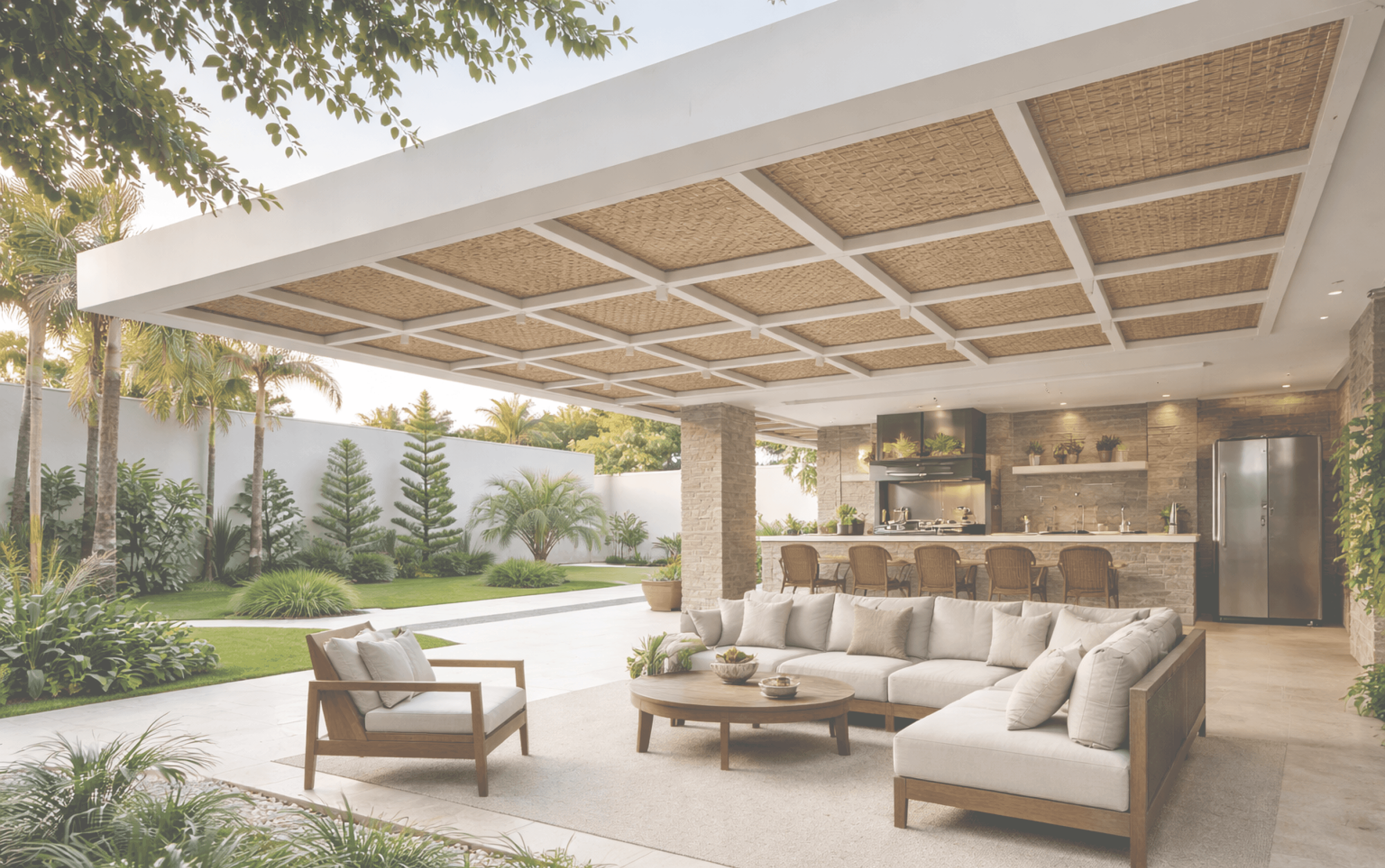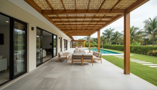 Reduz o calor, valoriza o ambiente e traz um visual natural sofisticado. Ideal para áreas externas, com acabamento artesanal.